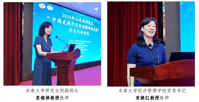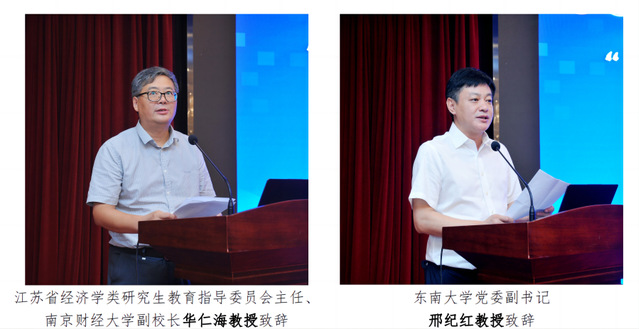开幕式上,江苏省经济学类研究生教育指导委员会主任、南京财经大学副校长华仁海教授、东南大学党委副书记邢纪红教授、东南大学研究生院副院长袁榴娣教授、东南大学经济管理学院党委书记袁健红教授分别致辞,向莅临本次会议的各位嘉宾、专家学者和研究生同学致以热烈欢迎和诚挚的问候。论坛开幕式由东南大学经济管理学院金融系主任刘晓星教授主持。