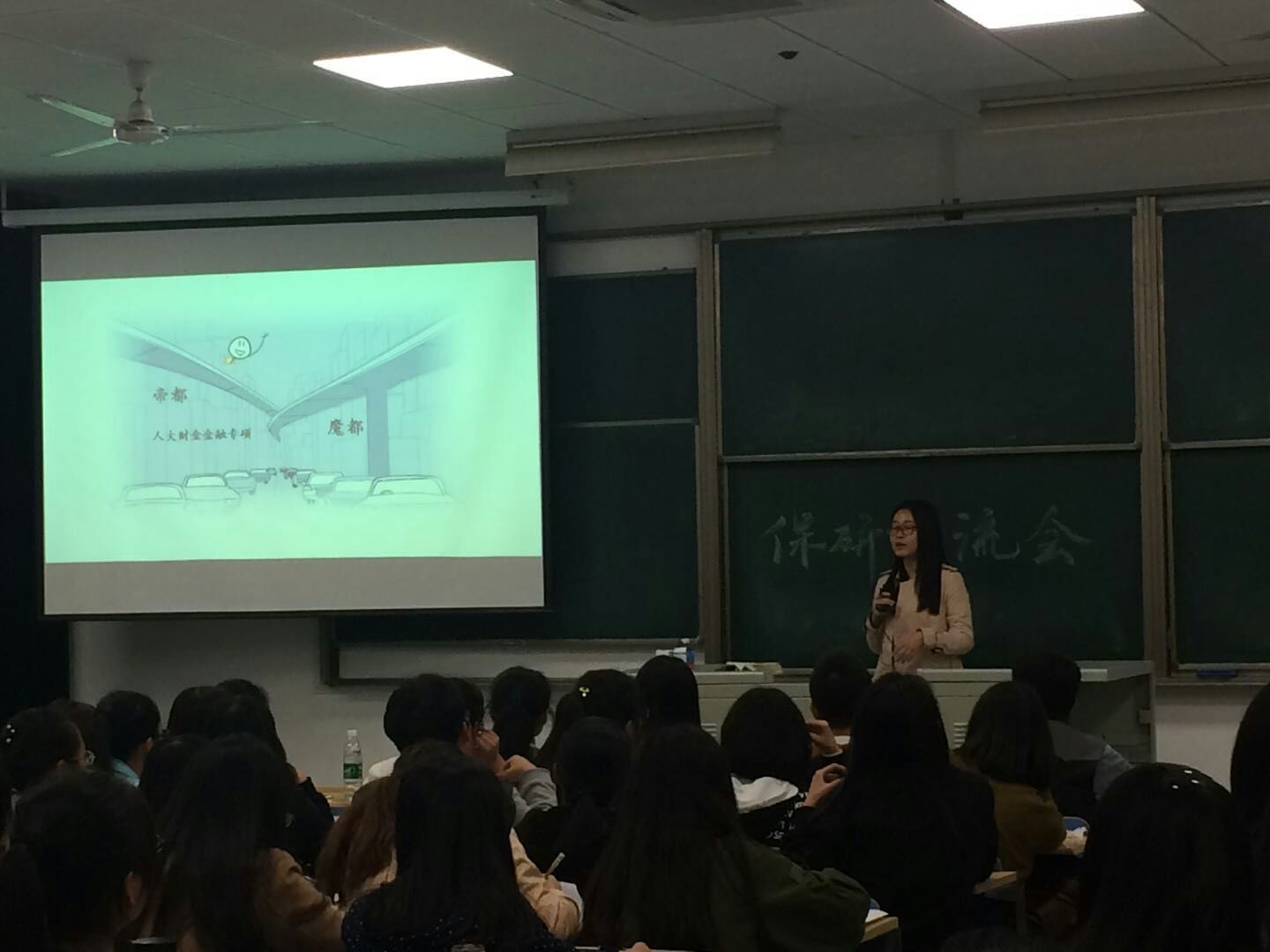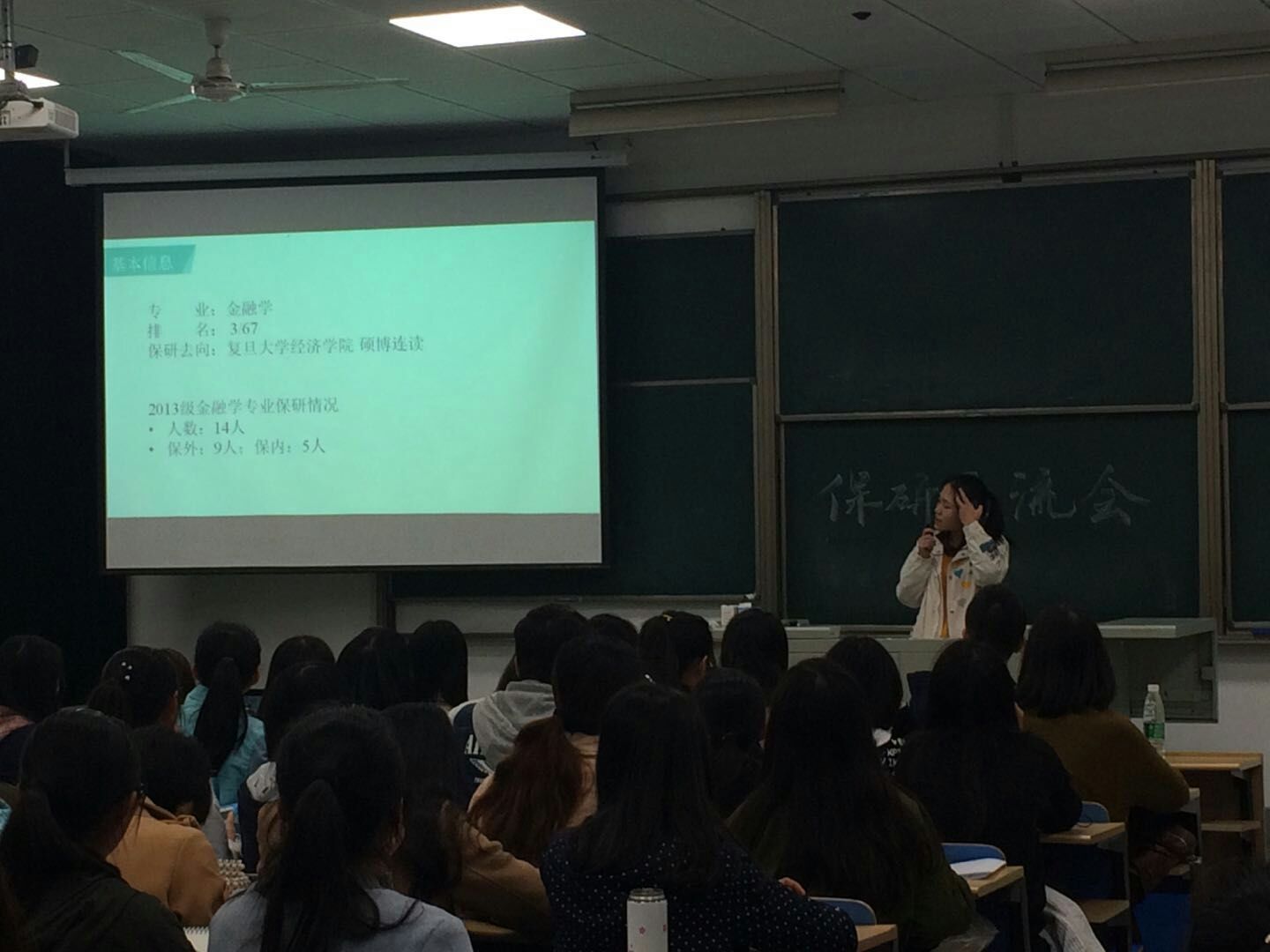 10月28日晚,由东南大学经济管理学院2014级团总支主办的学长学姐保研交流会于教二-103顺利展开,并取得了热烈反响。