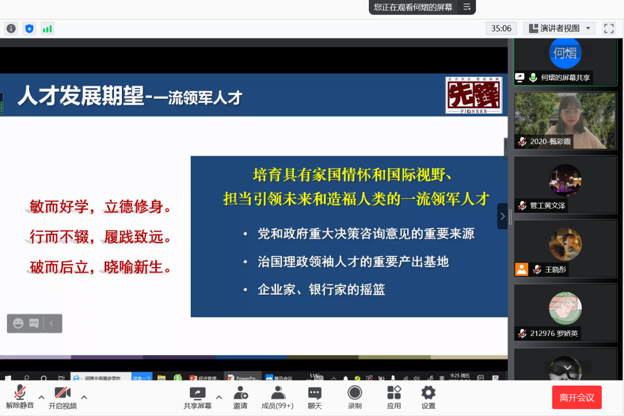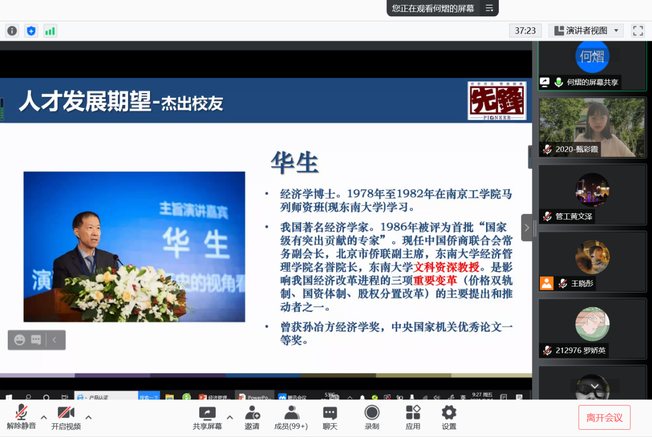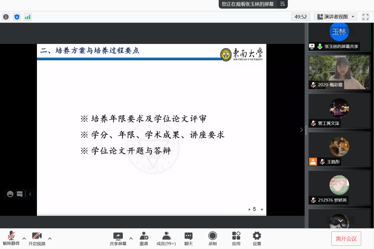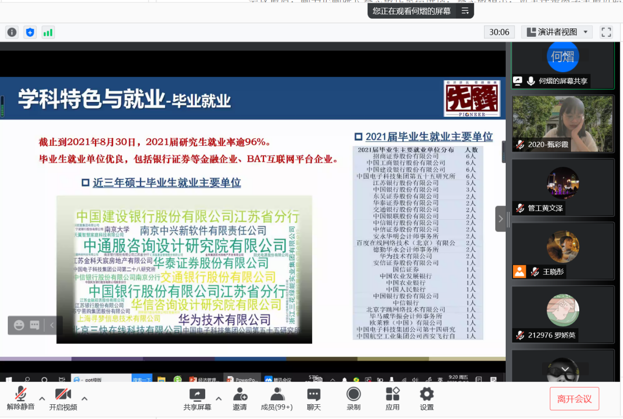 2021年9月10日上午9时,恰逢教师节,东南大学经济管理学院研究生新生入学教育如期举行,2021级182位硕士研究生及17位秋季入学的博士研究生在云端与东大经管相约。