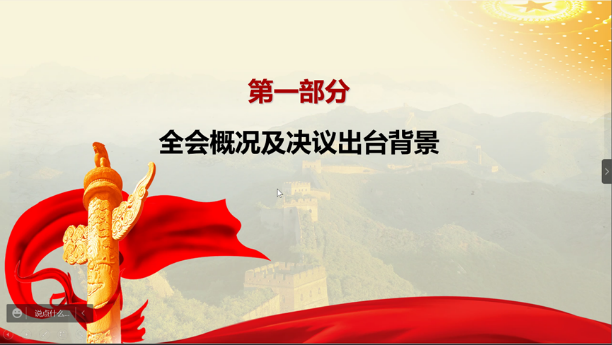 刘晓星老师首先介绍了党的十九届六中全会的概况,带领大家回顾了党的百年奋斗历程。在漫长的奋斗历程中,我党总能在关键时刻总结经验,汲取前进的智慧和力量。因此,作为新时代的大学生党员,学习总结党的百年奋斗重大成就和历史经验十分必要。