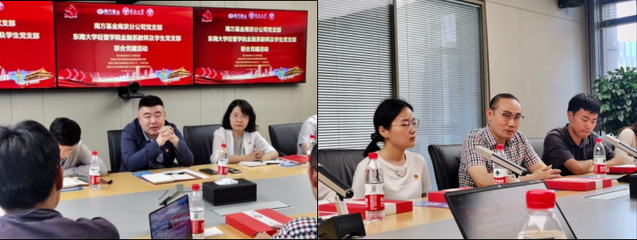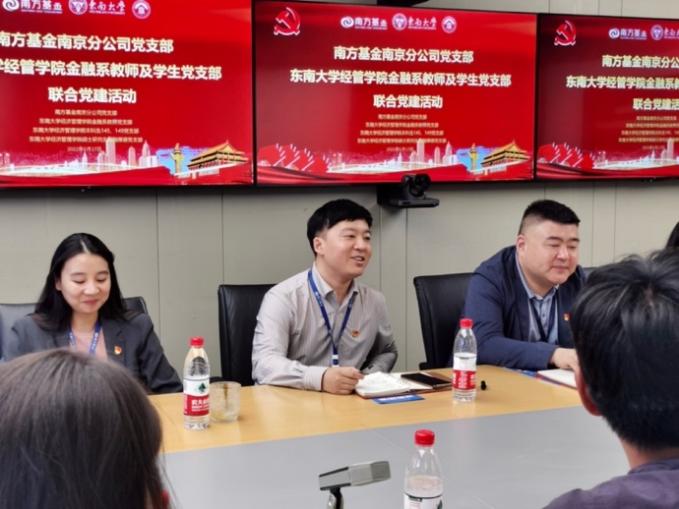 为深入贯彻习近平总书记关于金融安全的重要思想,进一步落实党中央、国务院关于打赢防范化解重大金融风险攻坚战的部署安排。2022年6月17日下午,经济管理学院党委委员、金融系教师党支部书记尹威老师带领本科生145&149党支部以及硕士研究生金融厚德党支部成员前往南方基金南京分公司,与南方基金南京分公司党支部联合举办金融安全主题党建活动,共同推进金融安全理论与实践的交叉融合。