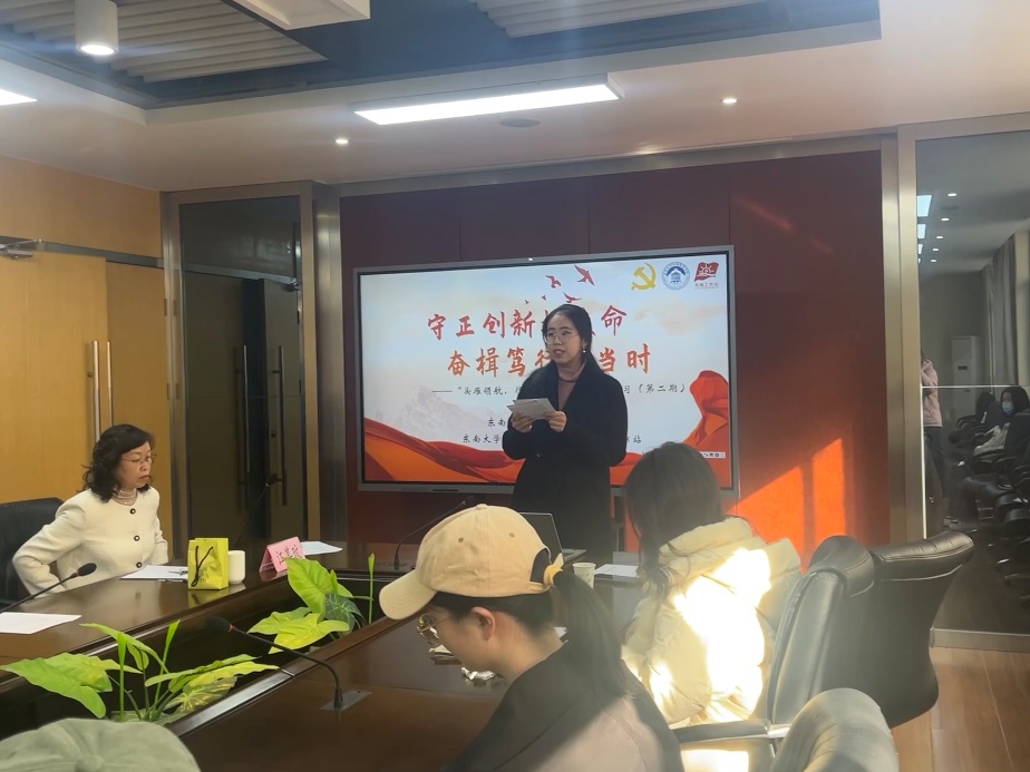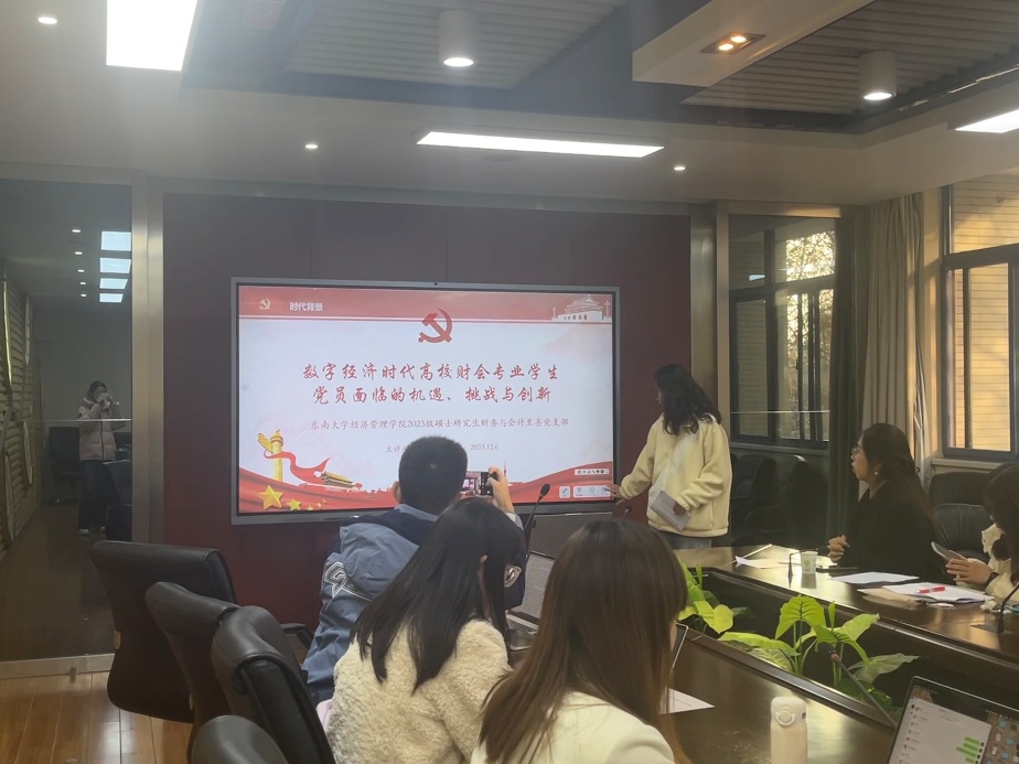 2023年12月6日下午,根据学院党委部署,东南大学经济管理学院举行“守正创新担使命,奋辑笃行正当时”——“头雁领航,行而不辍”重点理论学习(第二期)会议。会议由经济管理学院党委委员、财务与会计系党支部书记江其玟老师和财务与会计至善党支部书记陈宇轩同学进行党课领学,学院财务与会计系师生党员代表参加活动。