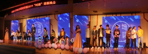 2019年11月1日18:30,经济管理学院2019“时肆”迎新晚会在圆报二楼多功能厅顺利举行。经济管理学院副院长浦正宁,经济管理学院工商管理系副系主任、gs1191、gs1192班班主任葛沪飞,院团委书记、2017级本科生辅导员林琼,院团委副书记、2019级本科生辅导员满雪颖,及来自多个兄弟院系的团委老师、辅导员和学生代表等,与经济管理学院全体大一新生一起参加了本次活动。晚会伊始,浦院长寄语新生,鼓励大家热爱学习、积极参加活动,珍惜校园生活。