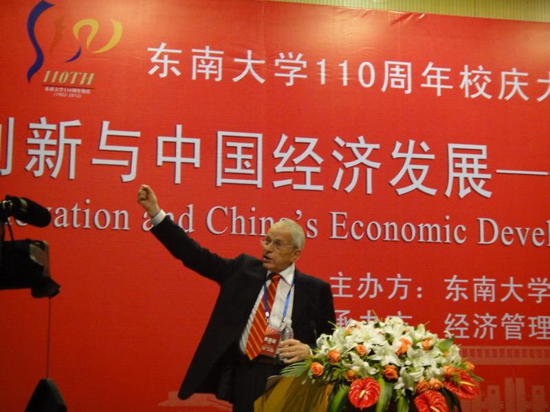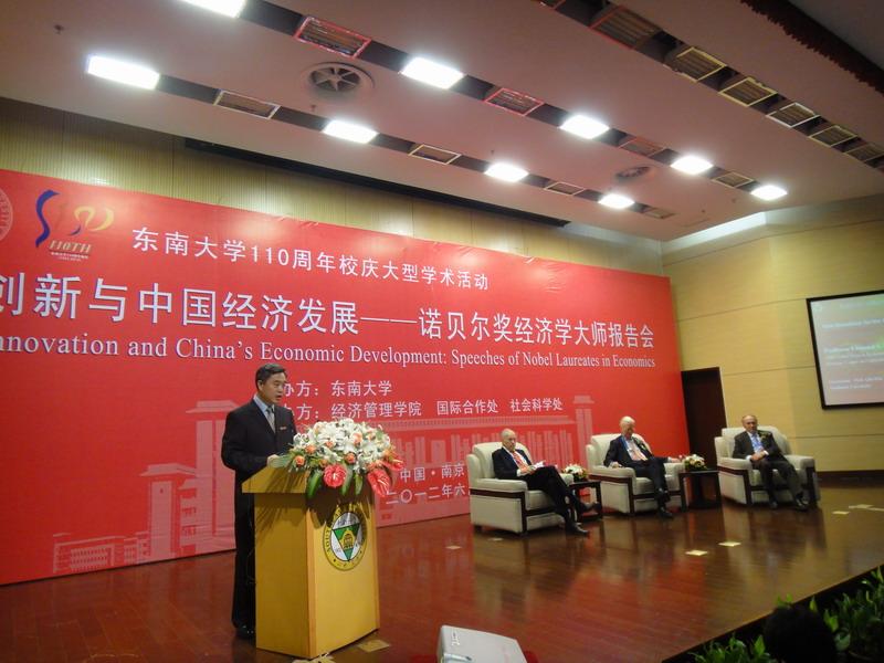 6月2日下午,由我院承办的东南大学110年校庆学术活动中的重头戏在九龙湖校区润良报告厅举行。我院负责邀请的三位获诺贝尔奖的经济学大师埃德蒙德·菲尔普斯、詹姆斯·莫里斯和爱德华·普雷斯科特联合报告会如期举行,三位大师围绕“创新与中国经济发展”,从多个角度阐述了创新这一主题。