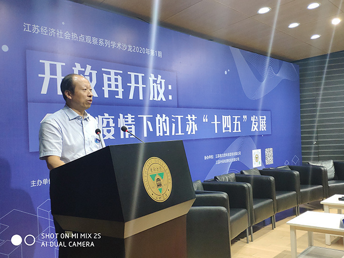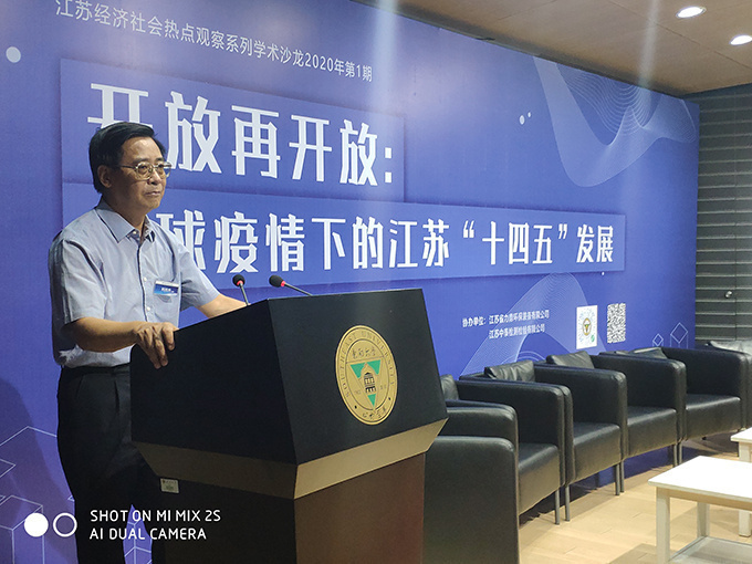 江苏省哲学社会科学界联合会党组成员尚庆飞副主席在致辞中表示:江苏是开放大省,外贸依存度超过40%,面对新冠疫情带来的巨大冲击和影响,只有以更大力度推动高水平改革开放再出发,加强与全球的深度融合,才能化“危”为“机”,在新的起点上“开放再开放”,加快由开放大省到开放强省的转变。希望在今年这样的特殊时刻,江苏发挥好人杰地灵优势,凝聚各类智库的智慧,更好地谋划江苏“十四五”高质量发展。