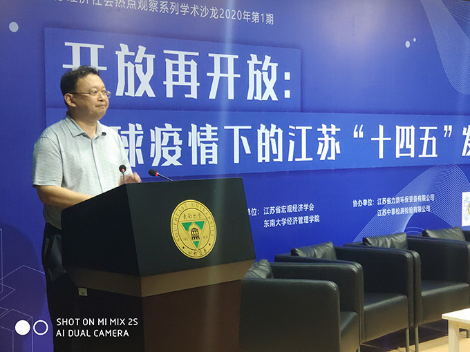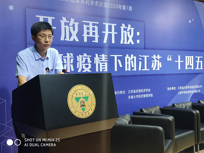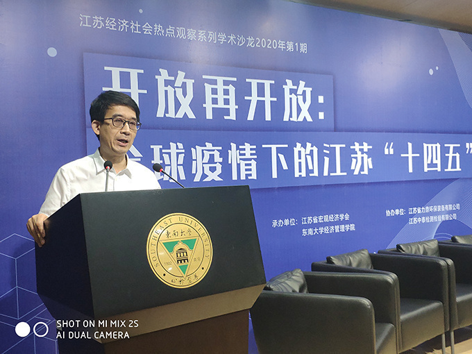 8月29日,由江苏省哲学社会科学界联合会与江苏省战略与发展研究中心联合主办、东南大学经济管理学院和江苏省宏观经济学会承办的“开放再开放:全球疫情下的江苏‘十四五’发展”学术沙龙在东南大学经管楼报告厅举行。来自省内宏观调控职能部门、宏观经济研究的专家学者、江苏省宏观经济学会会员单位代表和东南大学师生共计2万多人线上线下分享了沙龙多角度思想饕餮盛宴。沙龙由东南大学经济管理学院党委书记、江苏省宏观经济学会秘书长袁健红主持。