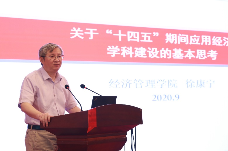 徐康宁教授从“十三五”期间应用经济学学科的主要成就和存在问题讲到“十四五”应用经济学科面临的形势与发展目标,并给出了相应的思路与建议。他表示,应用经济学科已进入全国前列,并初步形成具有一定规模的师资力量,但依旧存在学科队伍规模略小、人才培养成果缺乏亮点和协同效应不显著等问题,提出应积极采取有效措施,大胆使用青年教师等建议。同时,徐康宁教授强调“十四五”期间,学科之间的竞争非常激烈,不进则退,慢进也后退!敲响学院在“十四五”规划期间学科建设的警钟,阐明“取乎其上、得乎其中;取乎其中,得乎其下”的战略思路。