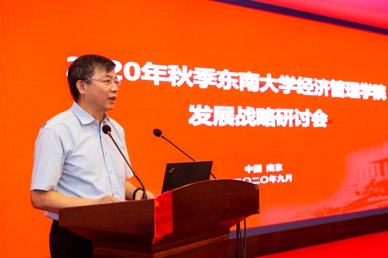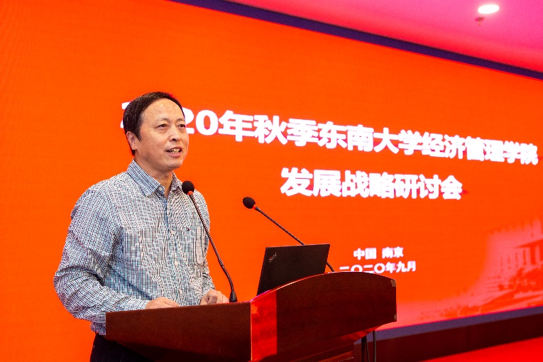 为凝心聚力编制好学院“十四五”发展规划,9月24日,东南大学经济管理学院2020年秋季战略发展研讨会在九龙湖宾馆成功召开。东南大学党委常委、常务副校长王保平、学院党政领导和全体教职工参加了本次研讨会。会议由学院副院长张玉林主持。