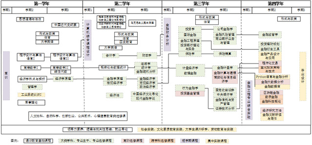 该专业秉持“卓越化、国际化、研究型”的人才培养理念,按照“厚基础、宽口径、重融合、强创新”的培养路径,旨在培养适应社会主义市场经济需要,德智体美劳全面发展,系统掌握现代金融工程理论与方法,能够熟练运用金融建模技术开发设计金融产品,优化投融资决策和金融风险管理,创造性地解决金融问题,具备创新精神、创业意识和创新创业能力,能胜任金融机构、政府部门和企事业单位工作的高素质复合型金融工程领军人才。