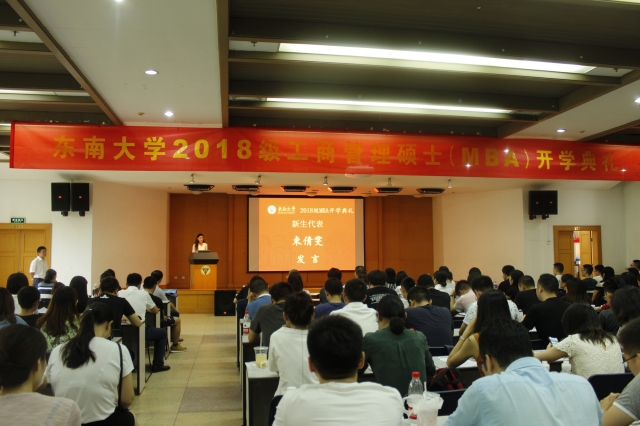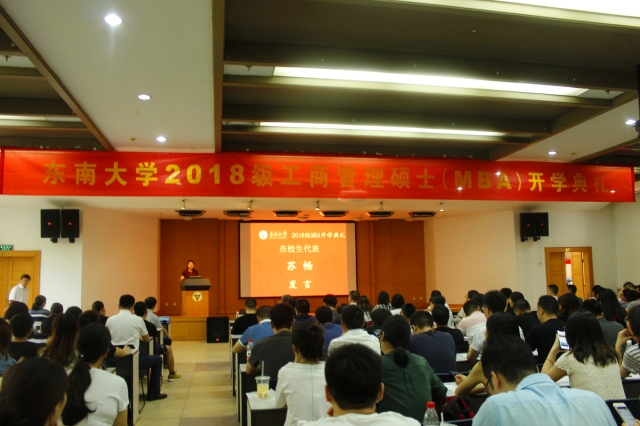 束倩雯同学代表全体新生,分享了加入东南大学mba大家庭的喜悦之情。她表示,一定践行好“止于至善”的校训,做好三个结合:一是学习与思考分析相结合,二是学习与工作安排相结合,三是学习与职业发展相结合。