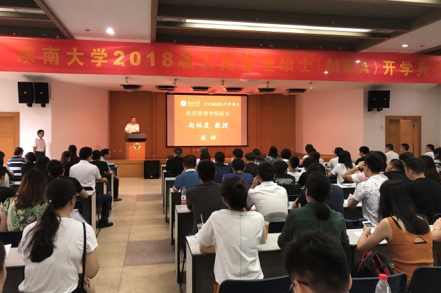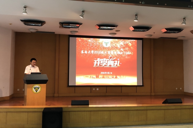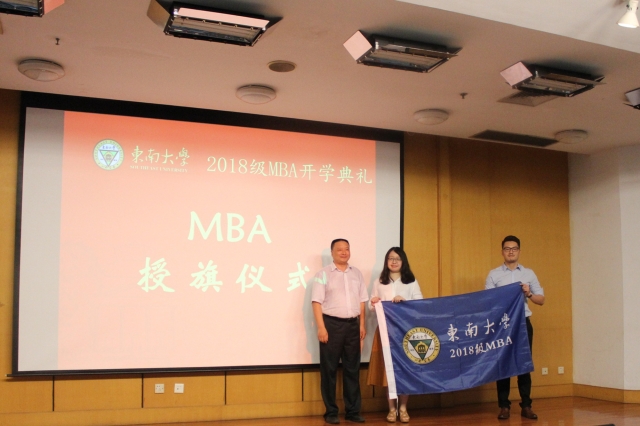 赵林度院长给新生代表李修竹、陈涛授旗,标志着2018级mba的正式启程。开学典礼在《东南大学校歌》的激扬旋律中进入了专题报告与入学教育阶段。