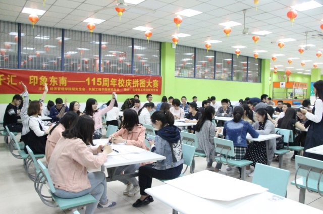 2017年5月5日晚6点30分,由东南大学经济管理学院和机械工程学院主办,化学化工学院协办的“百拼千汇,印象东南——115周年校庆拼图大赛”活动在橘园食堂一楼成功举行。