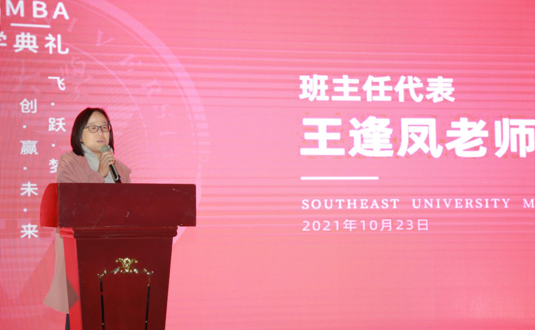 王逢凤老师作为mba班主任代表讲话。她对于同学们选择跳出舒适圈继续学习的选择予以充分的肯定,她说:“学历是纸牌,经历是铜牌,本事是银牌;持续性赚钱的能力是金牌,持续性学习的能力是王牌。”王老师鼓励同学们认真学习,通过mba三年的学习,实现思维方式的改变,认知视野的拓宽,从而实现职场能力的提升。