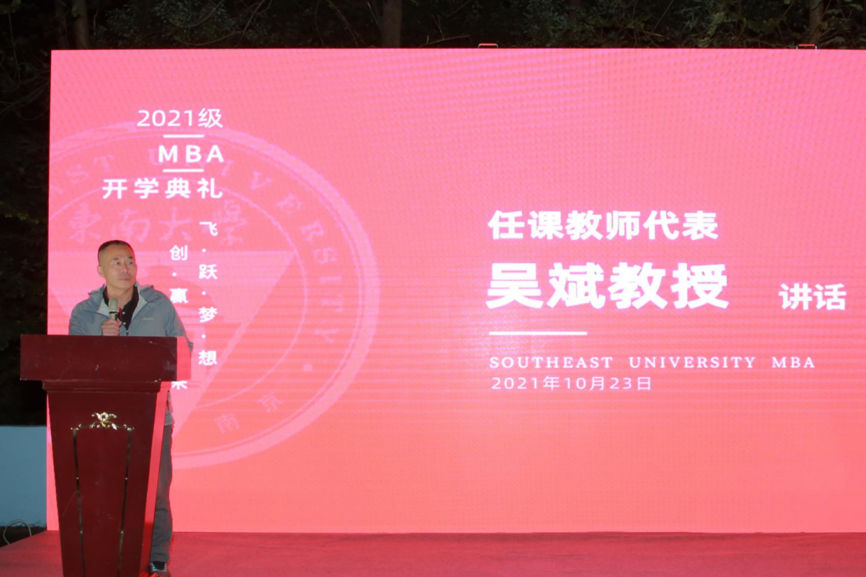 吴斌教授作为任课教师优秀代表发表讲话。他指出,东大mba培养出了许多优秀的人才,并介绍了优秀校友张新和何光华的事迹,希望同学们以学长和学姐为榜样,努力学习,为东南大学增光添彩。吴老师希望同学们带着问题来学习,带着知识回岗位,学用相长,知行合一,让三年mba学习生涯,真正成为人生的成长之旅。