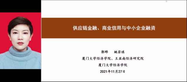 厦门大学经济学院金融系主任郭晔教授以供应链金融、商业信用与中小企业融资为主题,基于供应链视角分享了中小企业成为上市公司供应链主要成员对其融资能力的影响和作用机制。