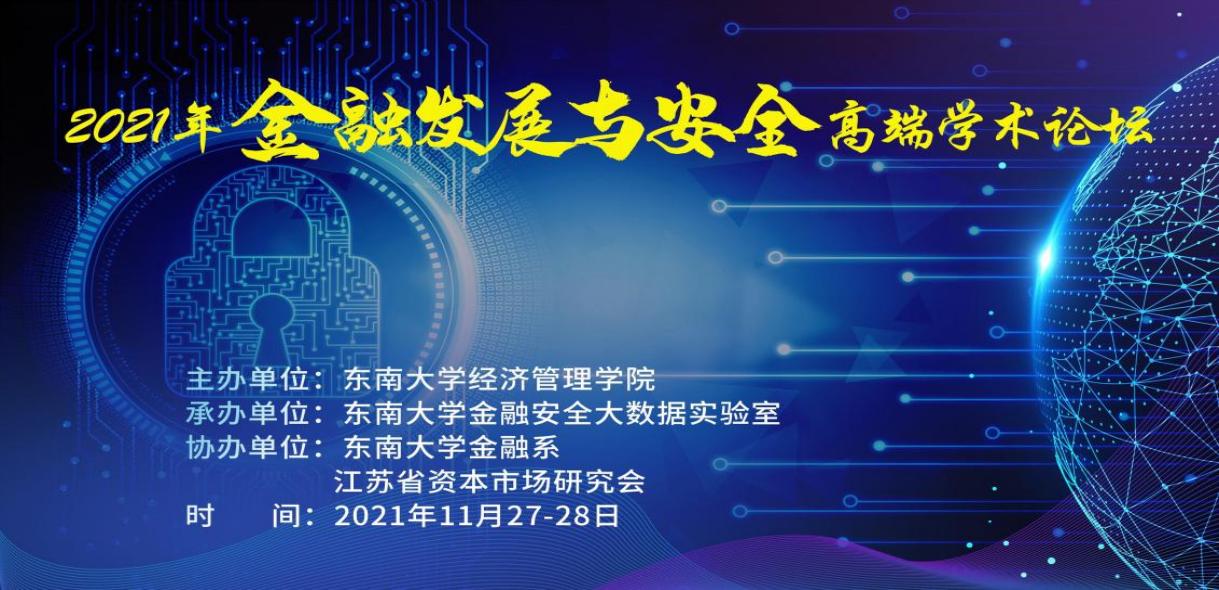 20211127-28日,在东南大学社科处的大力支持下,由东南大学经济管理学院主办、东南大学金融安全大数据实验室承办、东南大学金融系和江苏省资本市场研究所协办的2021年金融发展与安全高端学术论坛成功举办。受新冠疫情的影响,论坛采取线上会议的方式进行。来自清华大学、中国人民大学、上海交通大学、复旦大学、厦门大学、中山大学等国内30多所著名高校的优秀专家学者,共同探讨金融发展与金融安全领域的核心问题。论坛主题报告的领域包括金融科技、金融发展、金融安全、中小企业融资、金融创新与经济高质量发展等广泛议题。