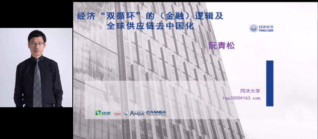 同济大学经济与管理学院副院长、党委副书记阮青松教授从经济双循环的视角,分享了关于我国经济双循环的金融逻辑与破局点选择的相关观点和看法。