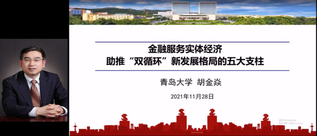 青岛大学党委书记胡金焱教授以金融服务实体经济为视角,讨论了在“双循环”新发展格局下金融服务实体经济的五大支柱,从普惠金融的情怀、消费金融的方向、绿色金融的理念、科技金融的眼光、开放金融的视野五个方面对金融服务实体经济的路径和方向进行了探讨。