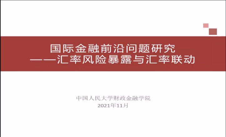 中国人民大学财政金融学院何青教授以exchange rate co-movements and corporate foreign exchange exposures: a study on rmb为主题,从公司层面的视角分享了我国双边汇率制度间时序波动特征。
