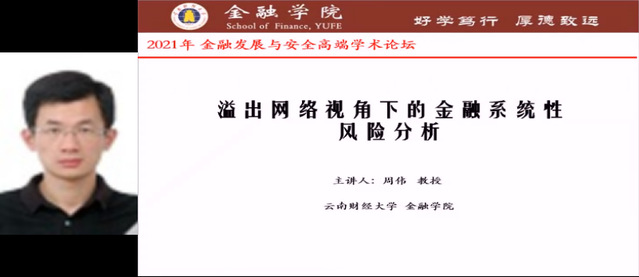 云南财经大学金融学院副院长周伟教授基于溢出网络视角下对金融系统性风险进行了分析,报告指出,如何避免因为某个金融关联领域的突发事件,导致整个金融甚至经济系统性爆发风险乃至危机,致使这个主题的进一步研究更显重要。
