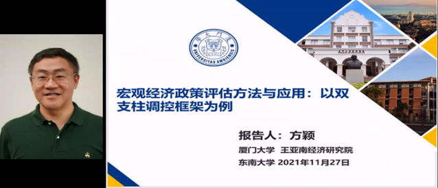 简短开幕式后,大会进入嘉宾主旨演讲环节。厦门大学方颖教授以“货币政策和宏观审慎双支柱调控框架的政策效应:基于宏观经济政策评估视角”为主题,rubin因果效应框架量化评估2007-2017年我国货币政策和宏观审慎双支柱调控对经济增长、物价稳定及金融稳定的影响。