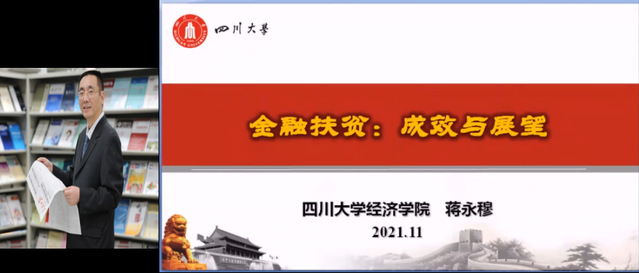 四川大学经济学院院长蒋永穆教授以金融扶贫为主题,分享了金融扶贫的重要意义、金融扶贫的基本做法、后扶贫时代的金融扶贫等研究成果。