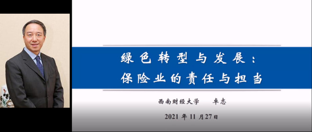 西南财经大学校长、党委副书记卓志教授以绿色转型与发展为研究主题,分享了在绿色转型与发展过程中保险业的责任与担当,为当前保险企业经营策略与产品设计提供了参考。