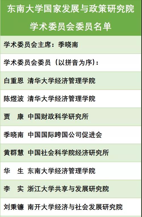 附:东南大学国家发展与政策研究院学术委员会委员名单