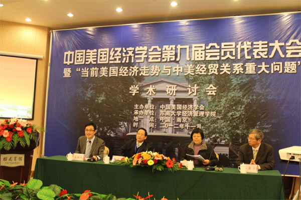 2012年11月17日,中国美国经济学会在东南大学成功举办了以“当前美国经济走势与中美经贸关系重大问题”为主题的中国美国经济学会第九届会员代表大会。此次会议由中国美国经济学会主办,东南大学经济管理学院承办。学会顾问陈宝森研究员、李长久研究员、刘崇仪教授等著名学者以及90余位来自中国社科院、清华大学、南开大学、浙江大学、复旦大学、武汉大学、厦门大学等著名学府的专家学者参加了此次会议,就贸易协定、区域合作与美国经济政策走向,财政政策发展、货币体系改革与美国国际经济地位演变,汇率走势、新型全球治理和中美经贸关系展望等三方面的问题展开了广泛而深入的探讨和交流。