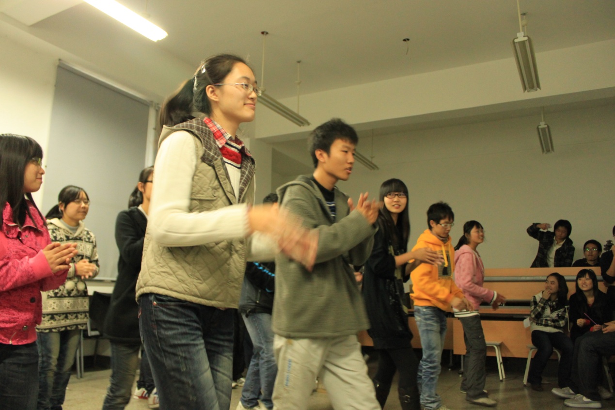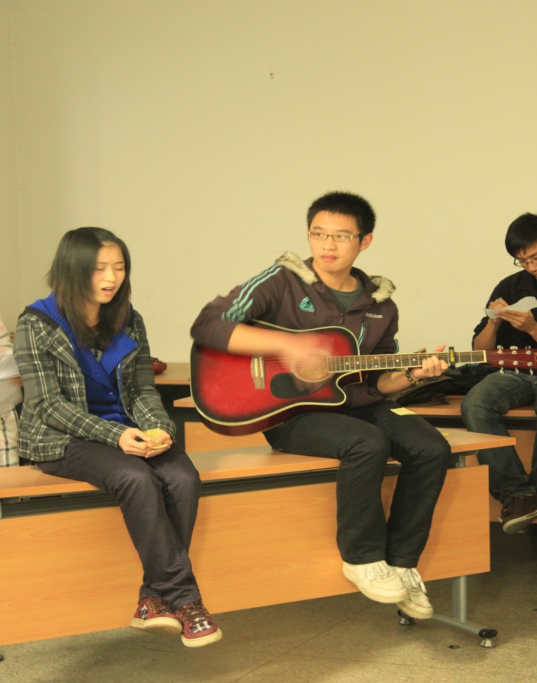 尽管准备的过程很不容易,但这丝毫没有影响同学们展现自我,张扬青春的激情,在小小的会议室里,各种表演节目精彩纷呈:从145091团支部感性的诗歌朗诵与活力四射的班歌演唱,到145092团支部劲爆的爵士拉丁;从144091团支部完美的吉他弹唱,到146091团支部的琵琶独奏;从142091团支部载歌载舞的歌舞青春,到142092团支部极富特色的天津快板和完全自创的班歌展示……最后是148091团支部以“物流”为特征的话剧表演。会唱内欢呼声,喝彩声此起彼伏,全然是一场歌舞盛宴,一顿丰富的视觉听觉大餐。