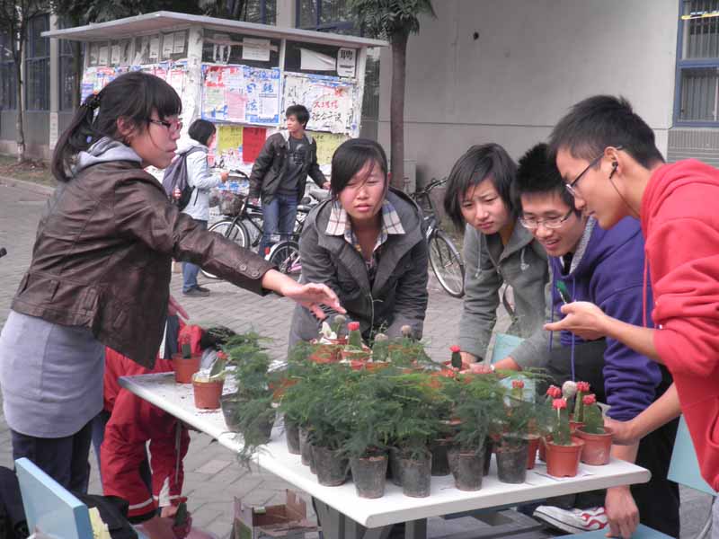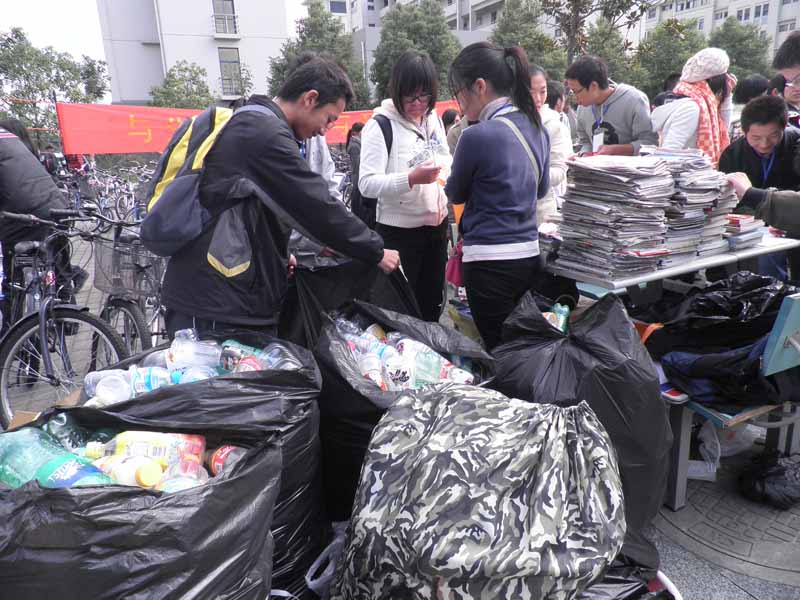 中午十一点活动正式拉开帷幕。现场气氛很热烈,同学们都争先恐后参与绿色盆栽兑换,活动开始之前就已有好多同学带着废书废报等废旧物品在排队准备登记兑换。当采访到第一位换到盆栽的同学对这次活动有什么感想时,她很激动,她说虽然自己不是青年志愿者协会的志愿者,但每次参加经济管理学院青协的活动,都能找到作为一个大学生的责任感,发现自己能够不断地改进并学到很多东西,她很支持这样的活动,也希望更多的同学能参与其中。这次活动参与面很广,连宿管阿姨也带上平时积累的废旧物品兑换盆栽,并连连称赞,现在的大学生办活动就是不一样。更让大家感动的是,在活动过程中有很多同学无偿的捐赠自己的废旧物品,为绿色环保贡献自己的一份力量。