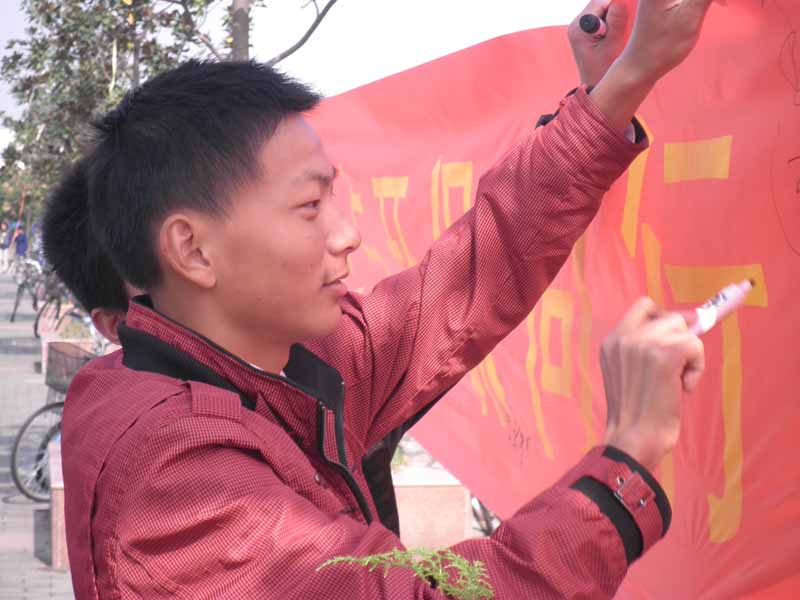 一个民族的脊梁是青年,而青年志愿者们无疑是新时代这个群体的先锋。良好的社会责任感不但是个人精神追求的目标,更是一个社会前进和发展的动力。宣传横幅上那一个个签名如同一颗颗赤诚的奉献之心;让我们看到东大学子不一样的风采,参与社会活动,承担社会责任,勇于奉献;让我们感到作为一名东大学子的骄傲与自豪;更让我们体会到作为青年人身上所肩负的社会责任和使命感。
