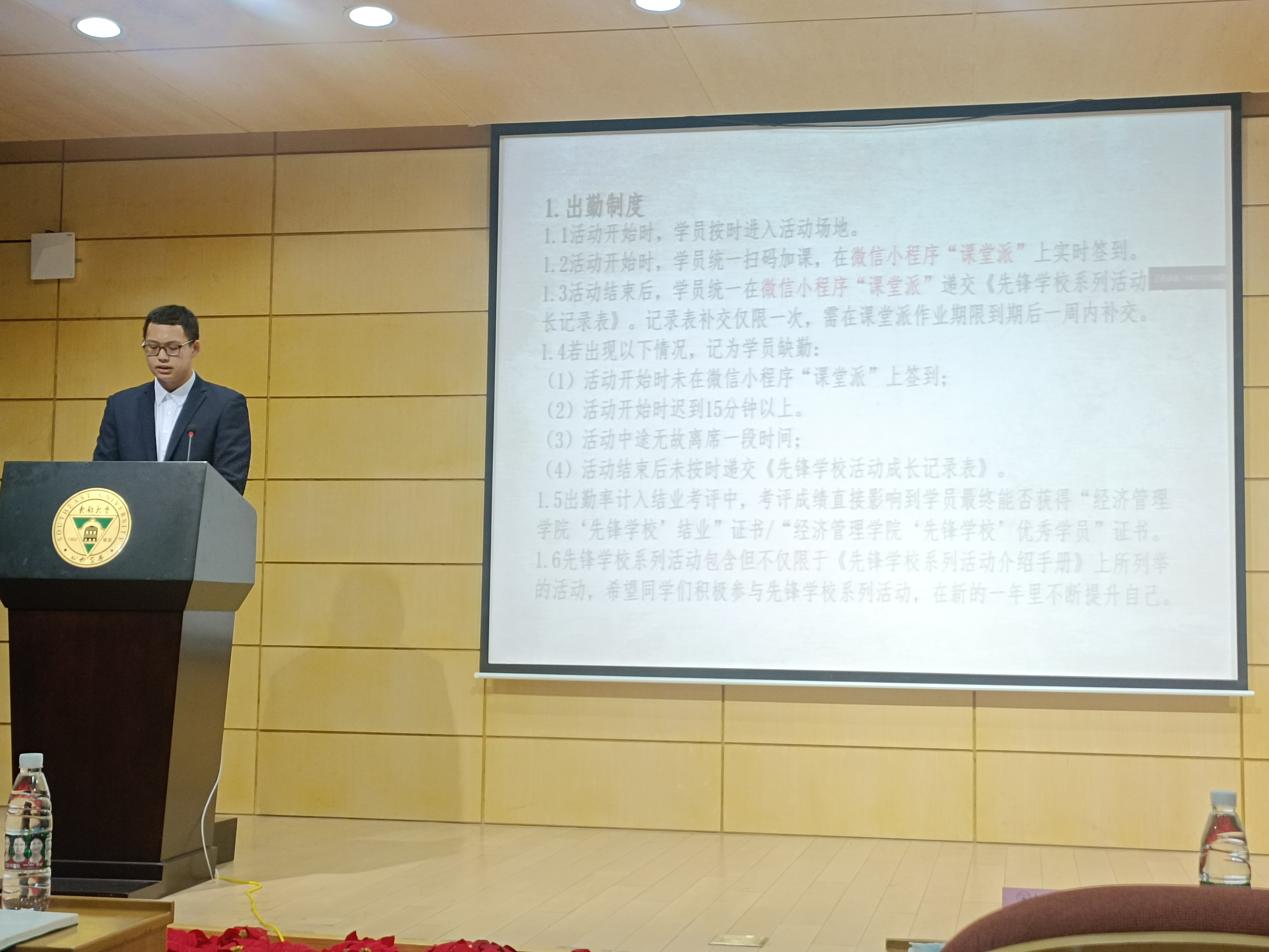 介绍完毕后,院团委组织部副部长罗旭辰详细介绍了“先锋学校”各项制度。