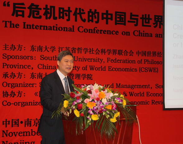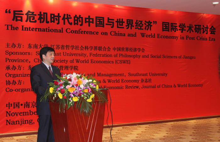 由中国世界经济学会、东南大学和江苏省社科联共同主办,我院承办,《国际经济评论》与china & world economy杂志社协办的“后危机时代的中国与世界经济”国际学术研讨会于2009年11月21-22日在我校九龙湖宾馆如期举行。会议邀请了100余名海内外相关领域的著名学者到会发表专题演讲和研讨。南京社科领域、兄弟院校、我校师生约300人参会。