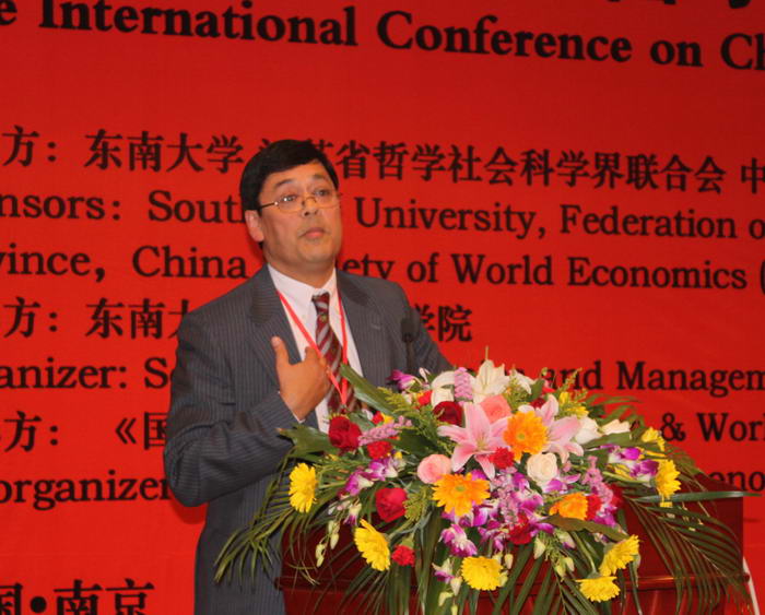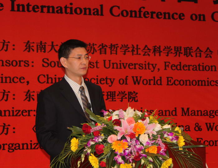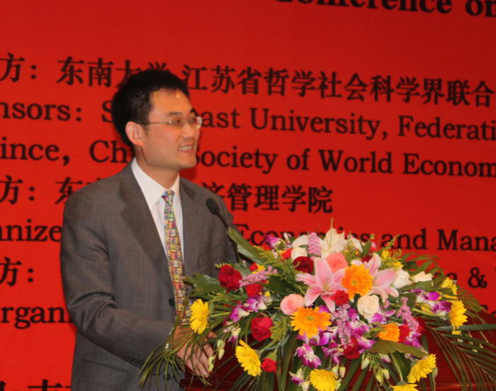 开幕式由我院院长徐康宁教授主持,我校浦跃朴副校长,江苏省社科联副主席周明生、中国世界经济学会秘书长邵滨鸿分别代表主办方致辞。日本东北大学经济管理学院院长佃良彦教授、中国社科院世界经济与政治研究所所长张宇燕教授、东南大学经济管理学院院长徐康宁教授、英国加的夫商学院肯特.马休教授、南京农业大学经济管理学院钟甫宁教授、澳大利亚西澳大学商学院吴延瑞教授分别作了大会主题报告。