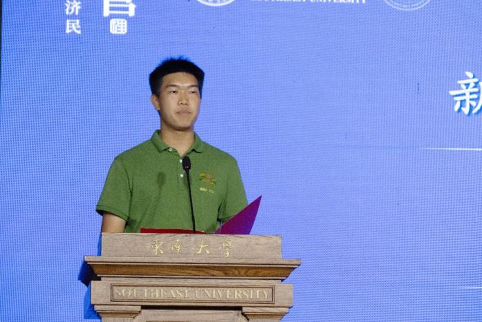 2024级新生代表陈刘宇彬则以军训为切入点,讲述了新生们在21天中所经历的磨砺与成长,表达了对东南大学的无限憧憬和对未来学术探索的坚定决心。他的发言展现了新生们在挑战中进步、在困境中锤炼意志的精神风貌。