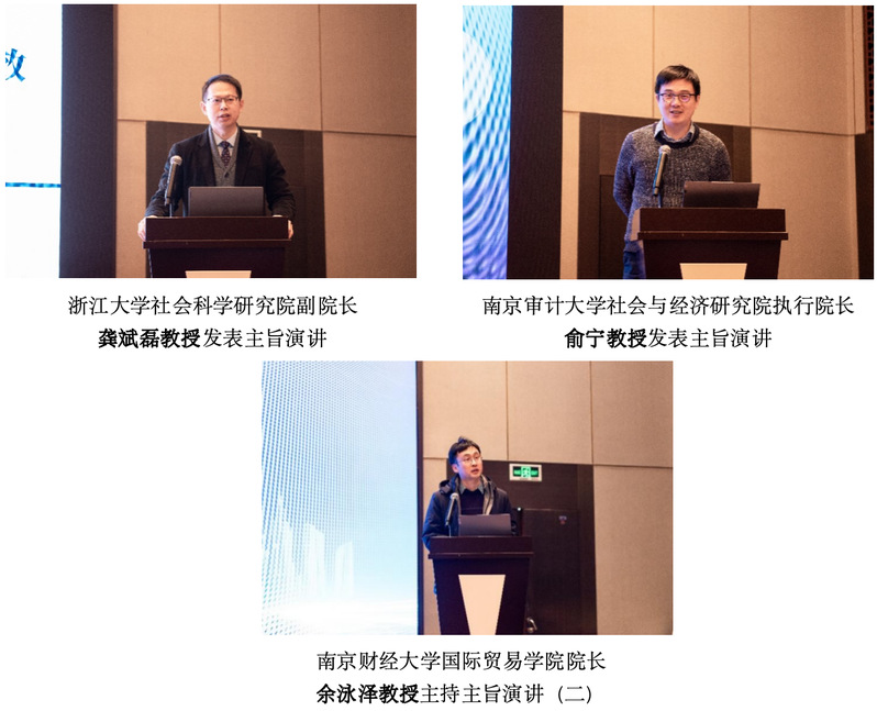 第二场主旨演讲由南京财经大学国际贸易学院院长余泳泽教授主持。浙江大学社会科学研究院副院长龚斌磊教授和南京审计大学社会与经济研究院执行院长俞宁教授分别带来了他们最新的研究成果。龚斌磊教授概述了中国政府绩效考核体系从唯gdp主义向更加注重三农、环境和公共产品的转型,以及这种转变如何通过定向激励、专项监督等措施提升政府治理绩效,促进城乡协调发展和乡村振兴。俞宁教授探讨了中华文明的仁本思想,通过行为科学实验验证了仁义之道对促进社会信任和合作的影响,并提出了构建中国特色哲学社会科学和人类命运共同体的可能性。