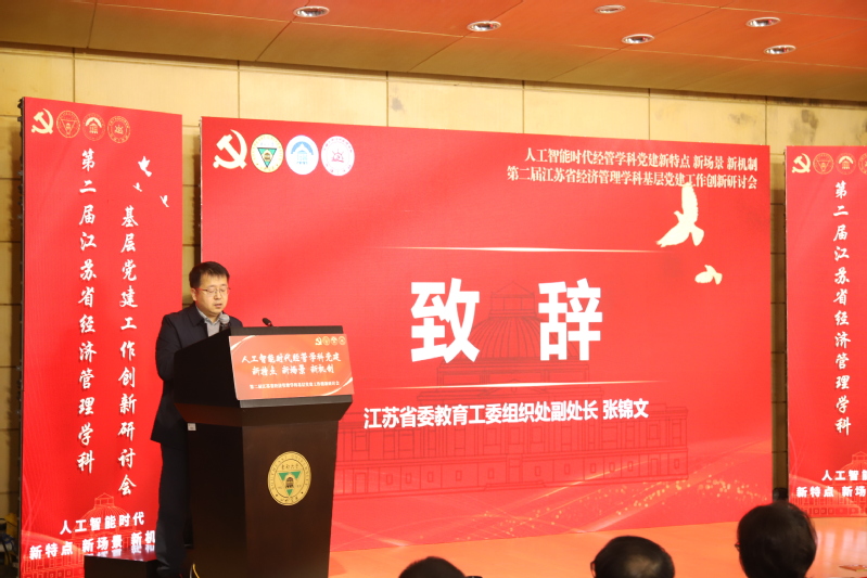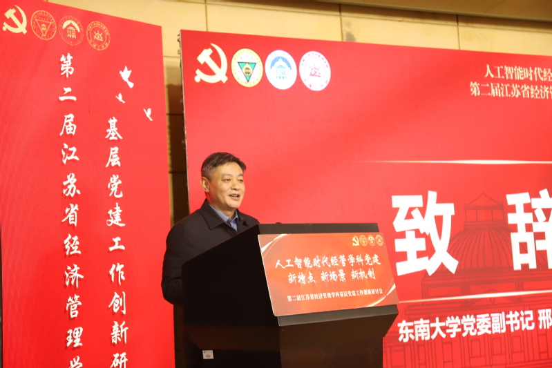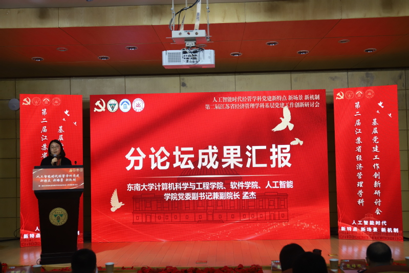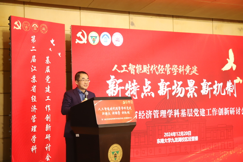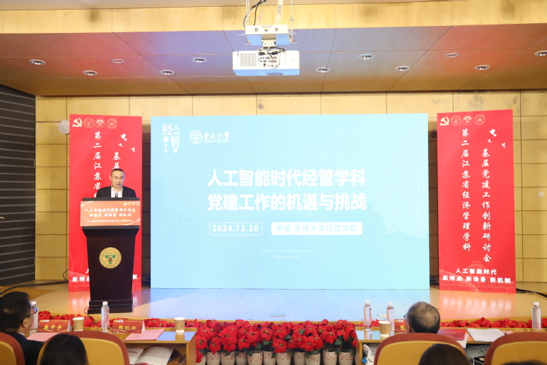 2024年12月20日,第二届江苏省经济管理学科基层党建工作创新研讨会在东南大学成功举办。此次研讨会由东南大学经济管理学院主办,学院先锋党建工作站承办。会议以“人工智能时代经管学科党建新特点、新场景、新机制”为主题,旨在深入学习贯彻党的二十届三中全会精神与全国教育大会精神。来自南京大学、东南大学、南京航空航天大学、南京理工大学、南京农业大学、南京师范大学、中国药科大学、中国矿业大学、江南大学、南京邮电大学、南京林业大学、南京信息工程大学、南京财经大学、南京审计大学、江苏科技大学、南通大学和人工智能领域的专家学者及政府、企业代表齐聚南京,共同探讨新时代人工智能、党建与经济管理学科的有机融合与创新,分享经验、应对挑战。研讨会开幕式由东南大学经济管理学院党委书记袁健红主持。