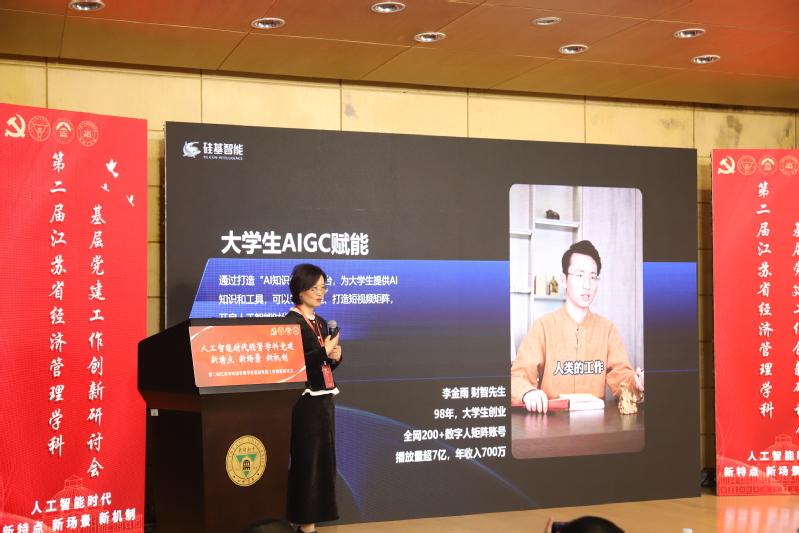 东南大学党委副书记邢纪红指出,高校经济管理学科建设在新质生产力发展和产学研深度融合中扮演着重要的沟通桥梁作用。如何将人工智能与经管学科基层党建有效结合,并通过“人工智能 党建”战略赋能新质生产力发展,已成为当前需要深入思考的重大课题。邢书记就本次研讨会提出三点目标:一是要“用”好新技术,构建人工智能与基层党建的有机结合;二是要“防”住新风险,确保人工智能在党建领域安全可控;三是要“干”出新路径,探索出适合高校经管学科基层党建需求的人工智能应用新模式。