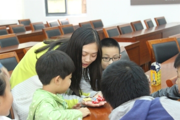 下午13:30,志愿者们提前到达活动现场,向小朋友们分发糖果并与她们交流互动,相互熟悉、调动活动气氛。