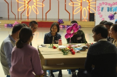 下午2点活动正式开始,由主持人进行开场并宣布活动流程。此次活动分为四个部分。第一部分为初识环节,每组同学在20分钟内相互了解,然后主持人在每组中随意选择两名同学进行记忆考验。主持人提问相关问题,两个人同时作答。在本环节中七个组均表现出了惊人的默契。