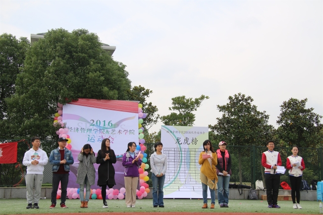 1030号下午,我校经济管理学院2016年运动会在梅园运动场圆满举行。本次运动会经过经济管理学院同学精心准备和投入,各级领导大力支持,运动会精彩纷呈,取得圆满成功。到场的嘉宾有:经管学院党委副书记祝虹老师,14级辅导员杨萌老师,15级辅导员林琼老师,16级辅导员张钒老师。