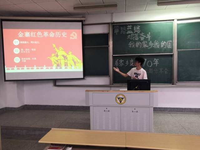 首先我们举办了“建国70年之精彩大学”演讲 ,同学们分享了建国七十周年以来,家乡的变化。