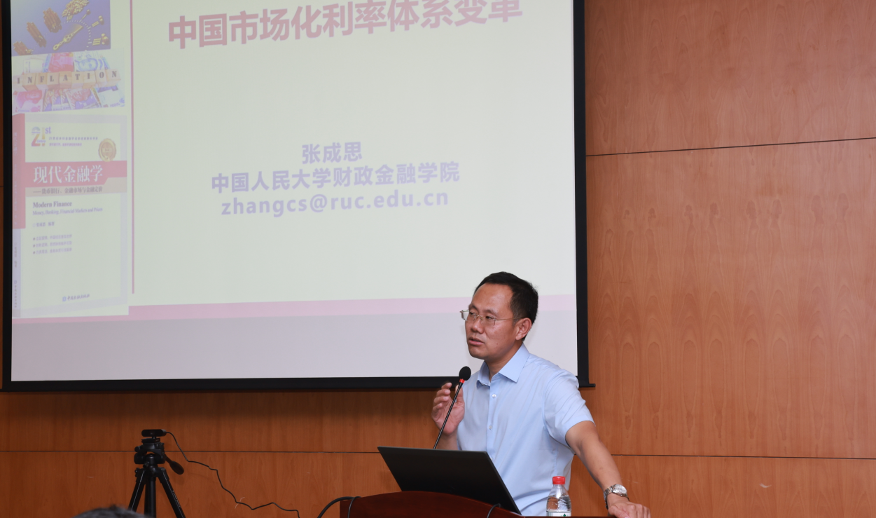 中国人民大学财政金融学院副院长 张成思教授进行主题报告 | 中国社会科学院金融研究所综合研究部主任 程炼教授进行主题报告 |