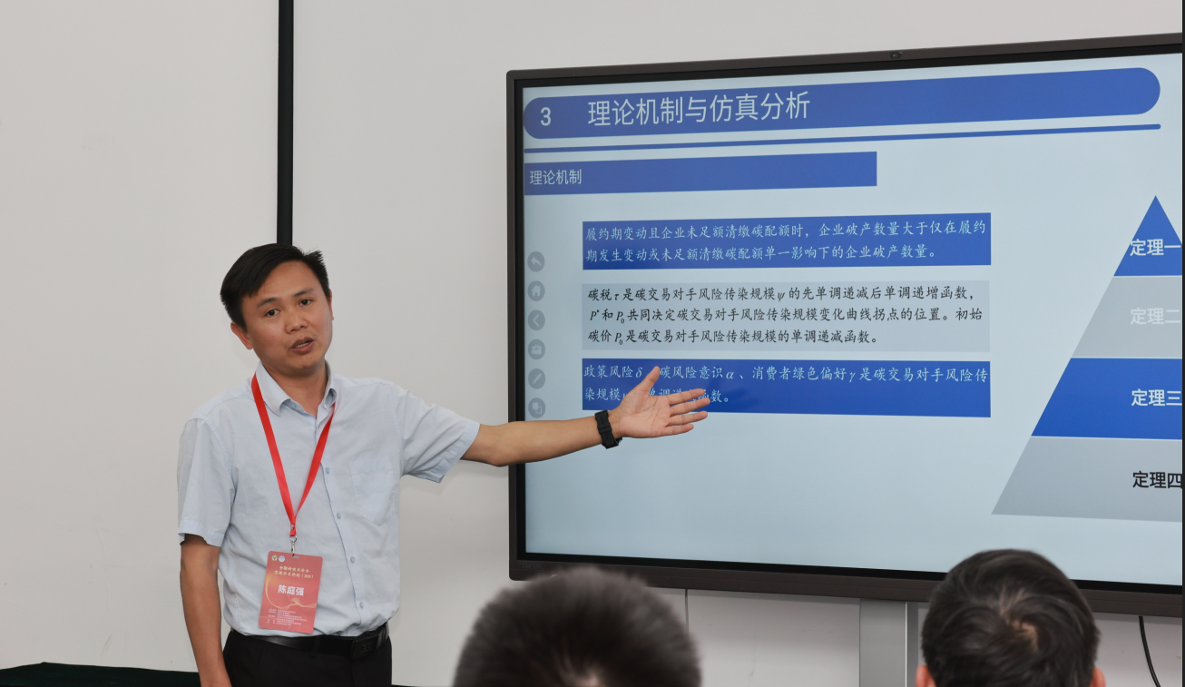 大会分论坛iii由东南大学经济管理学院金融系副主任李守伟教授主持。中央财经大学金融学院党委书记王辉教授,同济大学经济与管理学院党委副书记、副院长副院长、党委副书记阮青松教授,首都经济贸易大学校长、党委副书记吴卫星教授,湖南大学金融与统计学院院长王修华教授,南京工业大学经济与管理学院副院长陈庭强教授,分别进行了主题报告。王辉教授的报告主题为“网络安全治理与股价崩盘风险——基于上市公司年报文本分析的证据”,王教授通过深度学习方法分析上市公司年报文本,构建企业网络安全治理指标,研究网络安全治理和股价崩盘风险之间的关系及其机制,发现网络安全治理可以显著降低股价崩盘风险。阮青松教授的报告主题为“汇率波动的预测:经济政策的不确定性更好吗”,阮教授分享了关于经济政策的不确定性在汇率波动预测中的最新研究成果。吴卫星教授的报告主题为“贸易成本与家庭负债”,吴教授着重探讨了中国出口美国商品贸易成本上升对我国家庭负债决策的影响,并指出贸易成本上升显著提高了家庭负债水平,并且主要通过减少家庭收入、提高整体物价水平以及提升家庭风险承担水平提高了家庭负债。王修华教授的报告主题为“大型银行下沉对农村金融机构信贷行为的双重效应研究”,重点探讨了有关大型银行下沉对农村金融机构信贷行为的影响。陈庭强教授的报告主题为“碳税—碳交易协同下企业间碳交易对手风险传染研究”,陈教授分析了碳价和市场恐慌程度对碳交易对手风险传染影响机制,并指出在履约期变动且企业未足额清缴碳配额的情况下,企业破产数量呈波动上升趋势,碳交易对手风险传染规模最大。