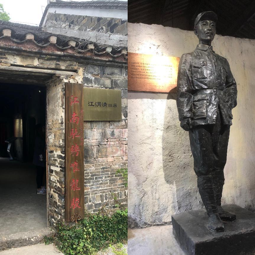 走进江渭清旧居,这间见证革命风云的小屋里,栩栩如生的江渭清塑像引人注目,给人以英武伟岸之气。江渭清,时任新四军十六旅政委、中共苏皖区委书记、苏南区行政公署主任,就在这不起眼的农家小院,运筹帷幄、决胜千里之外。凝视这尊塑像,仿佛见到他当年组织指挥溧高战役、长兴战役、反顽战役时的矫健身影。