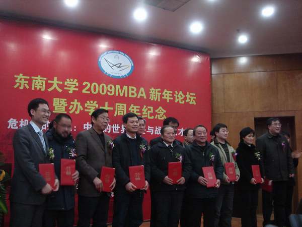 2009年元月19日下午,严冬季节的逸夫科技馆报告厅却春意盎然,由东南大学经济管理学院与研究生院主办、东南大学mba中心与东南大学mba联合会承办的“东南大学2009mba新年论坛暨办学十周年纪念”大会在此隆重举行;论坛的主题是:“危机中的机遇——中国的世界责任与战略人才时代”。全国mba教学指导委员会、江苏省经贸委和学校及有关部门的领导;知名学者和企业家代表;东南大学历届mba学员师生代表和来自省市媒体记者共计300多人参加了盛会。