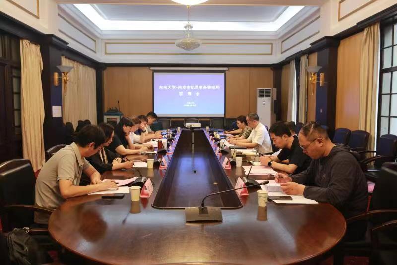 2023年6月30日下午,东南大学与南京市机关事务管理局在东南大学四牌楼校区大礼堂二楼会议室召开主题为“深化高水平战略合作 共促高质量融合发展”的联席会议。东南大学党委常委、副校长黄大卫出席会议,东南大学经济管理学院党委书记袁健红主持会议,东南大学总务处、发展委员会、教育基金会、经济管理学院相关人员参加了会议。南京市机关事务管理局党组书记、局长张小平,局党组成员、副局长陈海健,办公室、政策法规处相关人员和南京财经大学法学院夏清瑕教授参加了会议。