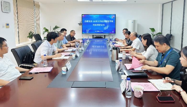 2023年8月21日下午,东南大学经济管理学院党委副书记兼副院长尹威、副院长浦正宁、国际经济与贸易系系主任冯伟与副系主任陈丰龙一行4人赴苏豪国际集团股份有限公司(以下简称苏豪股份)开展调研交流,苏豪股份党委副书记张培根等参与接待和座谈。