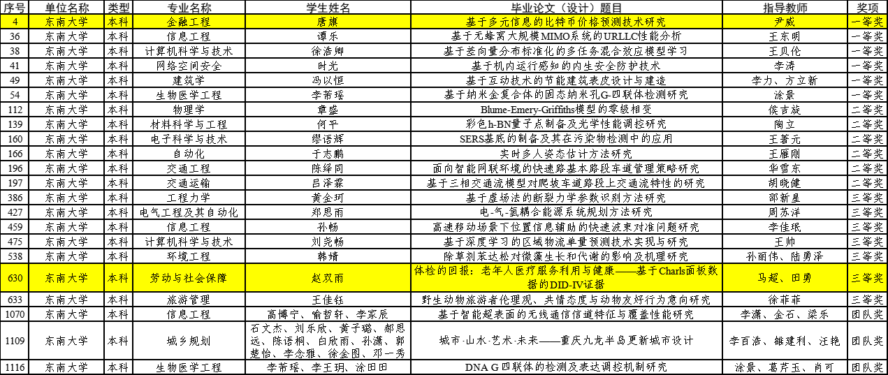 我院在本次评定中喜获佳绩。由尹威老师(经济管理学院)指导、唐旗同学(金融工程专业)撰写的毕业论文《基于多元信息的比特币价格预测技术研究》获一等奖,马超老师(经济管理学院)和田勇老师(公共卫生学院)共同指导、赵双雨同学(劳动与社会保障专业)撰写的毕业论文《体检的回报:老年人医疗服务利用与健康——基于charls面板数据的dd-iv证据》获三等奖。